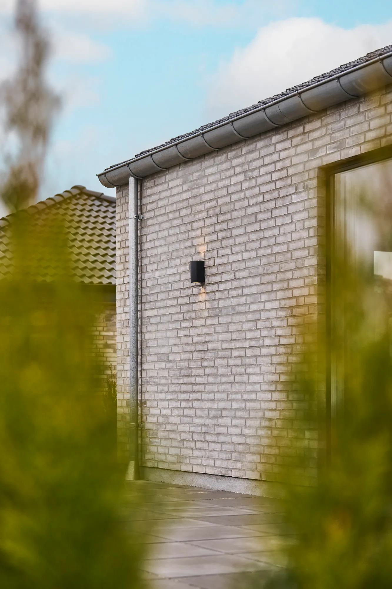 I får et hus med et moderne udtryk, sadeltag uden udhæng, og med de eftertragtede detaljer, vi hos Hybel er kendt for: Overmuring, skotrender i ét stykke, rainshower med shampohylder og væghængte toiletter uden skyllekant for et let udtryk og nem rengøring.