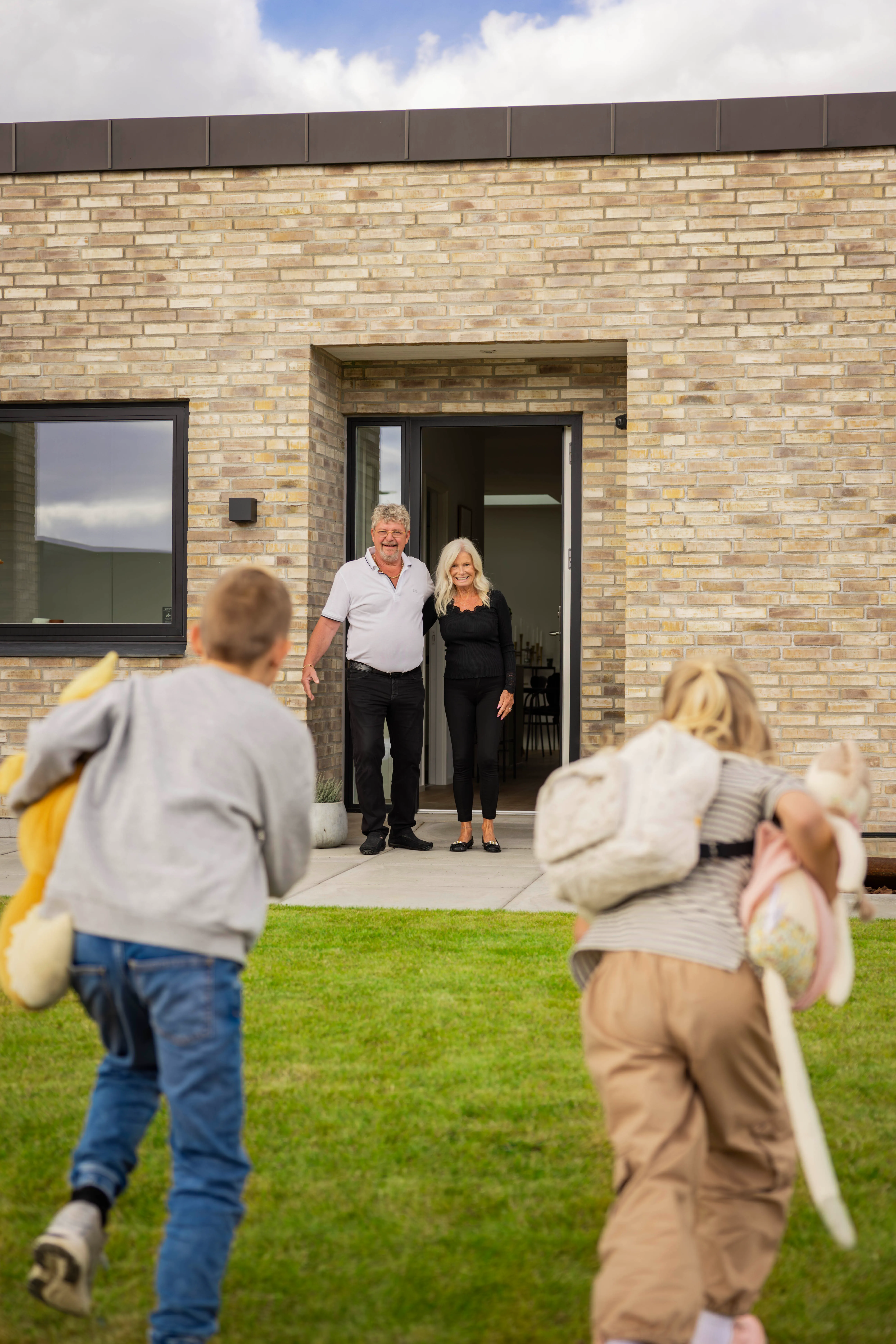 Og så har vi optimeret alt, fra planlægning til byggeproces, så I kan få jeres drømmehus til en fast, lav pris.